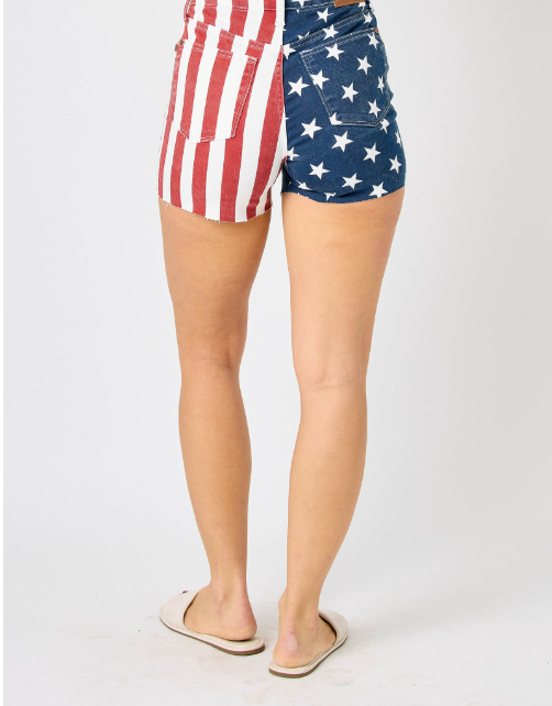 JUDY BLUE MID RISE USA STAR FRAY HEM SHORTS- AMERICAN