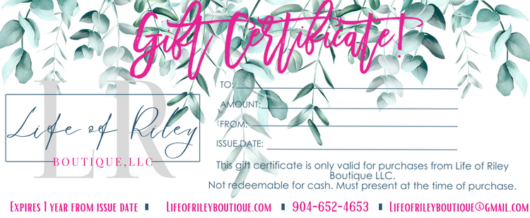 LIFE OF RILEY BOUTIQUE, LLC GIFT CERTIFICATE