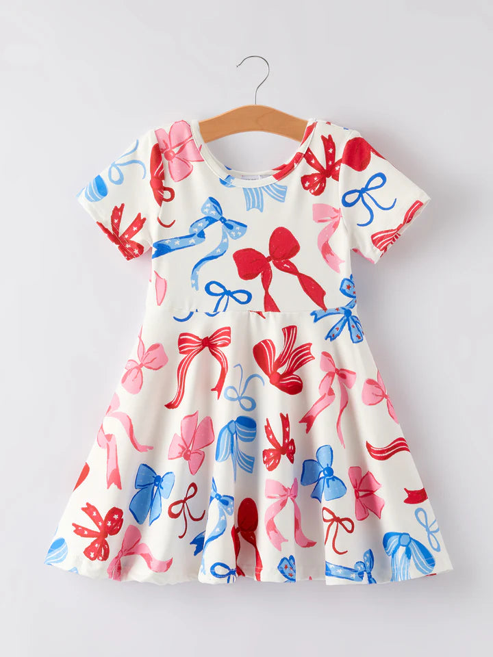 Rylee Faith Design 4th of July Color Bow Printed Short Sleeves Dress